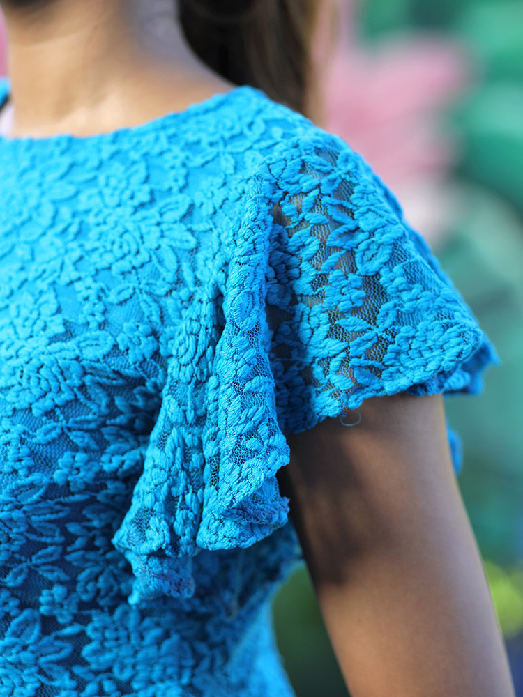 Effortless and elegant, pick this trendy blue lace crop top for the perfect summer brunch look.