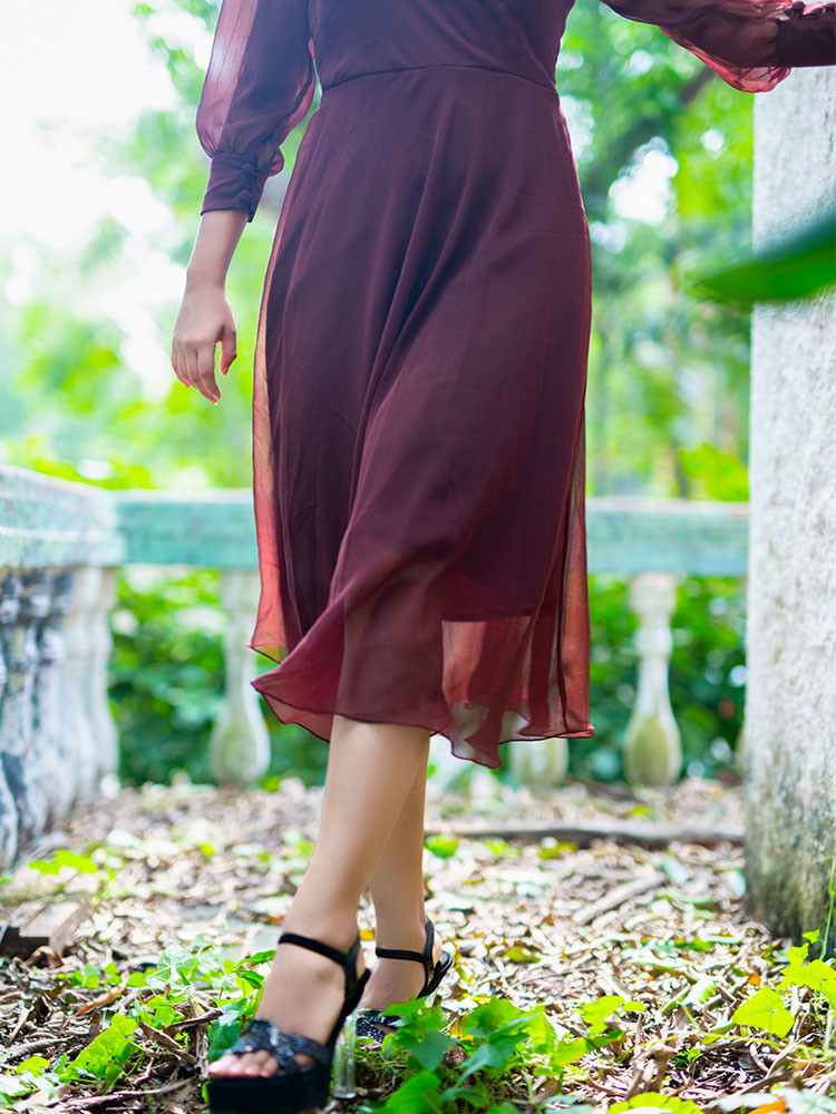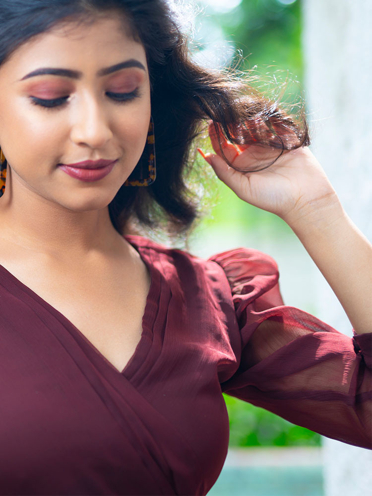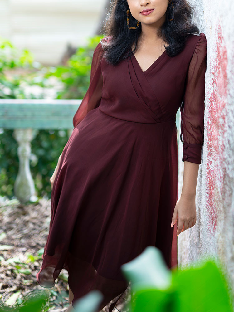 Get the delicate look right by pairing this dress from the house of venora, with accessories of contrast colour shades